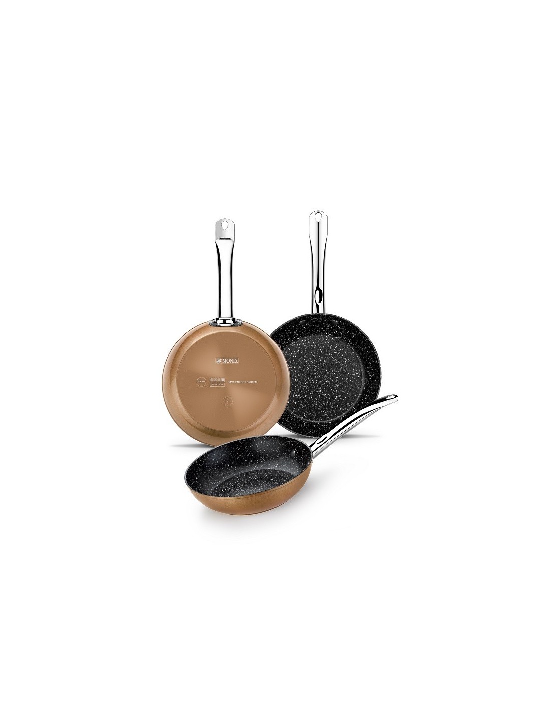 La sartén Copper está fabricada en aluminio forjado de la mejor calidad y su efecto exterior en aspecto de cobre metalizado distribuye el calor de forma más regular.Apta para todo tipo de cocinas.