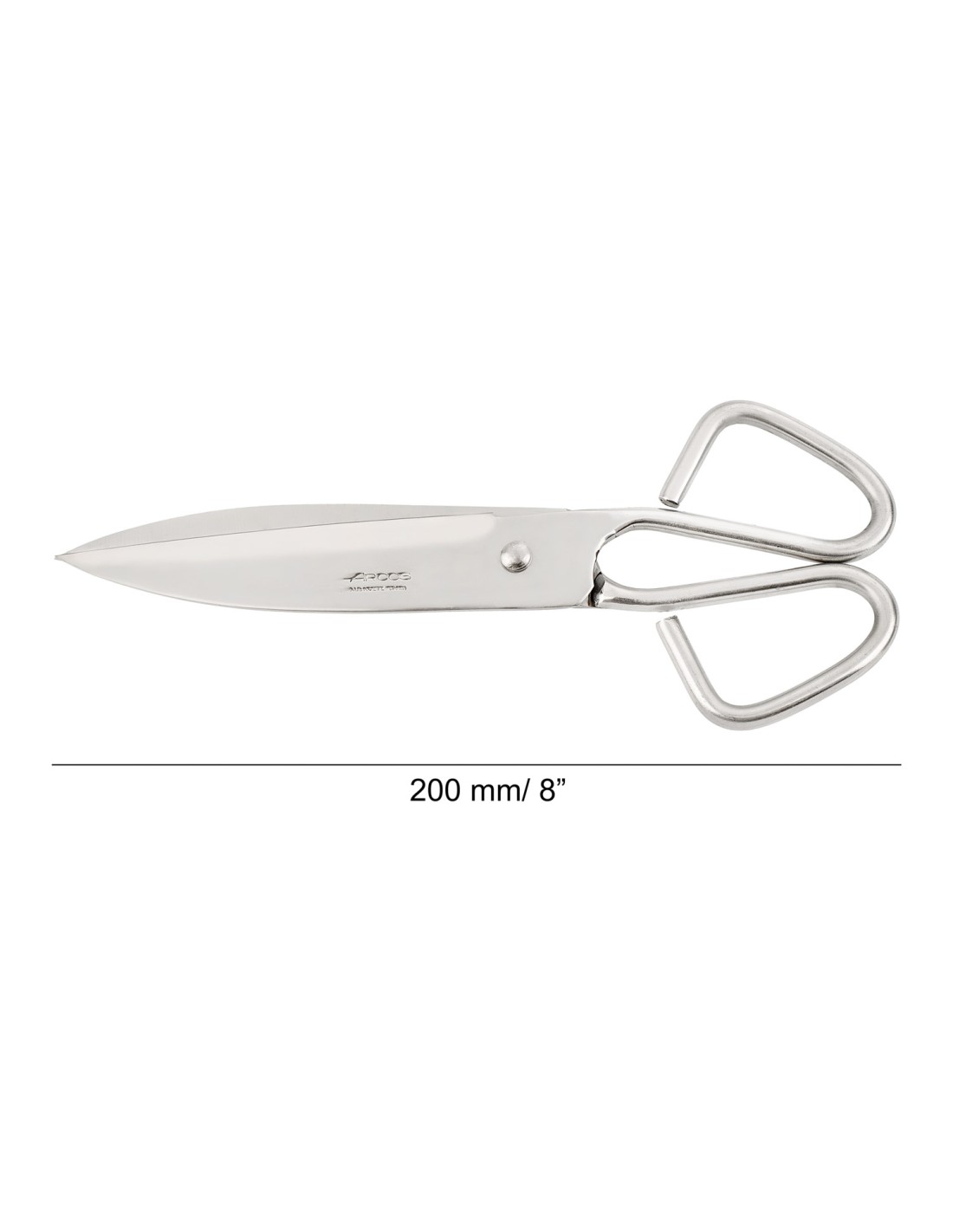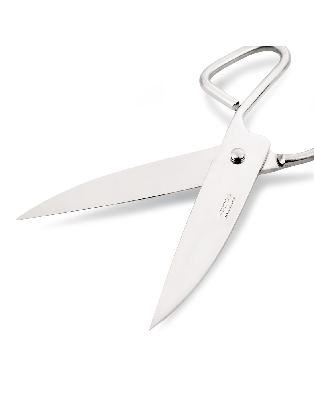 Las tijeras de cocina 200 mm de Arcos tienen un llamativo y limpio color cromo. Sus hojas lucen un estilo clásico, que contrasta con el diseño minimalista de los dedales, ya que son finos y semicerrados hacia las astas. Es una herramienta culinaria de la familia Ecopro, cuyas principales fortalezas son sus acabados plateados y su elevado poder de corte.